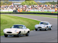 Fordwater Trophy Celebrating fifrty years of the 'E'-type. As you can imagine, I spent a great deal of time watching the Lightweights.. Of particular interest was number 10, (original registration 4 WPD), the famous "Coombs Lightweight" driven by Emanuele Pirro, left, just behind Martin Stretton who went on to win, sharing the glory with owner Jon Minshaw. Pirro won this race in 2005 but this time co-driver Desire Wilson wrecked the car coming up to the chicane far too fast. Gerhard Berger below left took second place in an exciting finish.Far left Colin Pearcy tweaks the Webers on his 1961 'E'-type. |